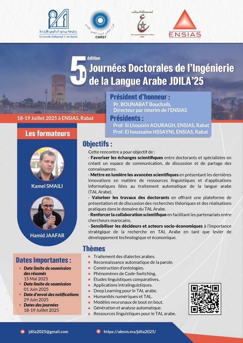 5ème édition des Journées Doctorales de l'Ingénierie de la Langue Arabe JDILA’25